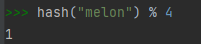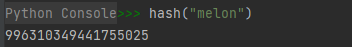 파이썬 콘솔에서 hash() 함수에 "melon"인자를 넣어보자