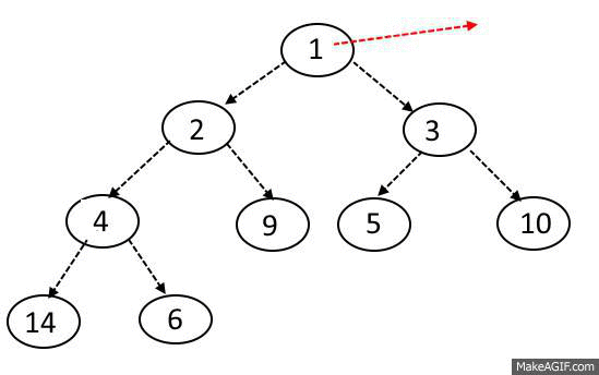 # 1. 루트 노드와 맨 끝에 있는 원소를 교체한다.